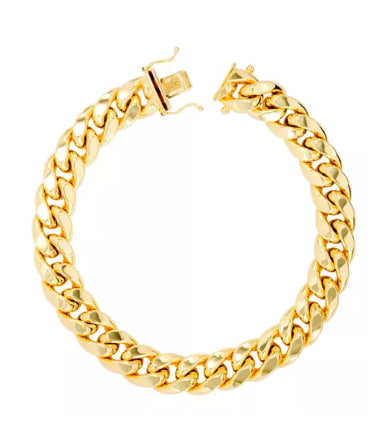 Pulsera Barbada Cubana Miami Oro 14k 21cm 11mm Italiano Caja Color Dorado Diámetro 7 " Largo 21 cmMXN58888.00
