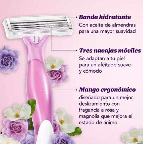 Rastrillo Mujer Bic Soleil Escape Rosa Magnolia 3 PzMXN145.00